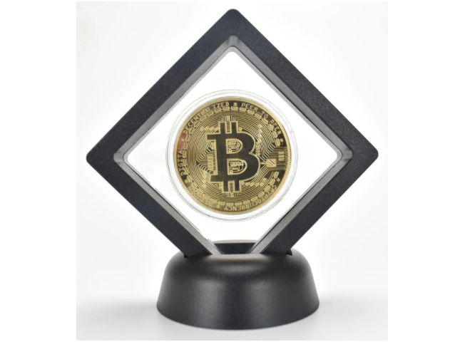Moneda de Bitcoin (No es un Bitcoin) de color dorado. Perfecta para decorar el comedor o las habitaciones de su casa.